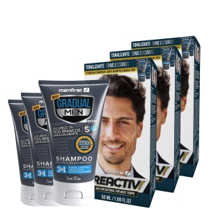 Kit 3 Black + 3 Castanho Shampoo Escurecedor de Cabelo Gradual Men | Menfirst - Total 6 Produtos
