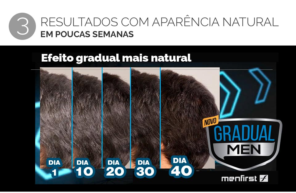 Como não cobre 100% dos fios, mantém sempre a aparência natural e rejuvenescida. Não é uma tintura e os cabelos brancos serão gradual e progressivamente escurecidos de forma discreta.